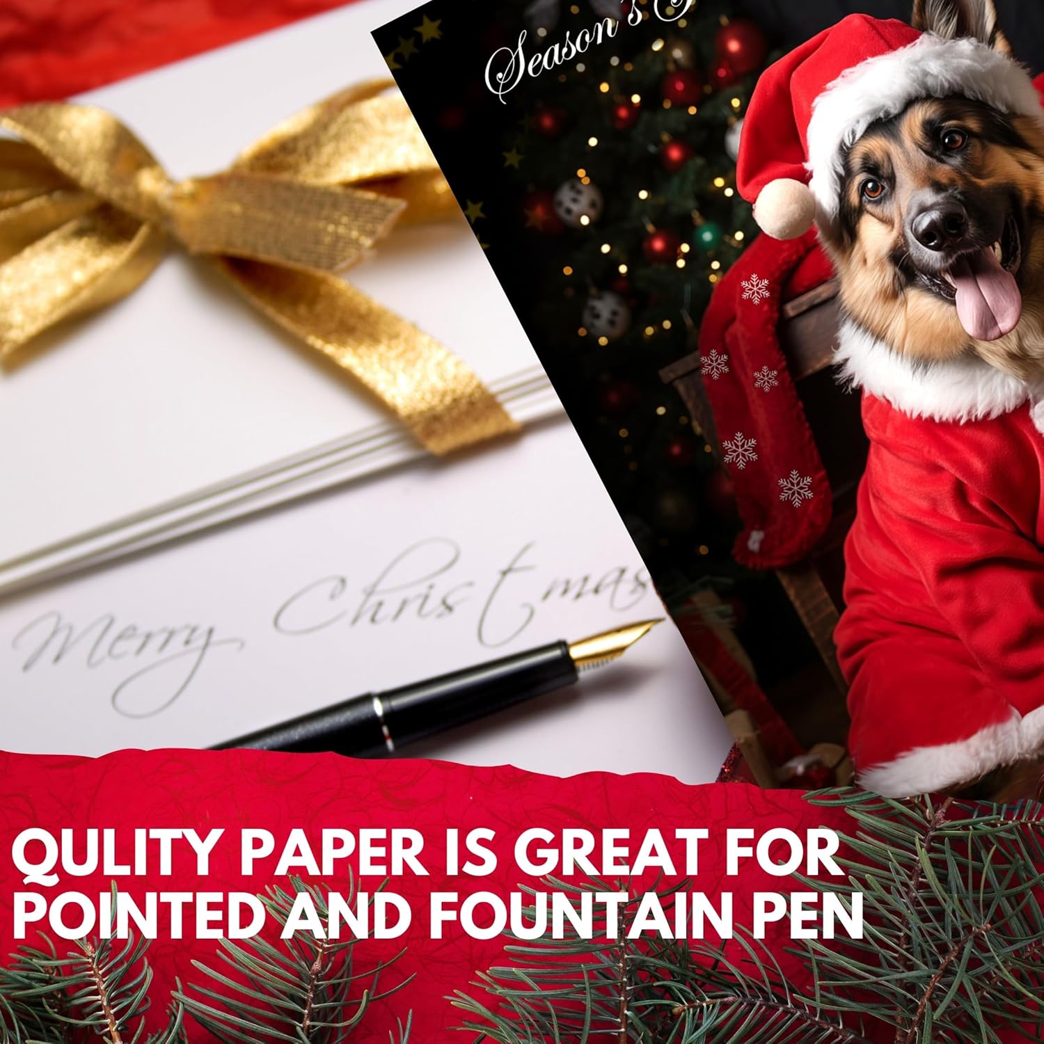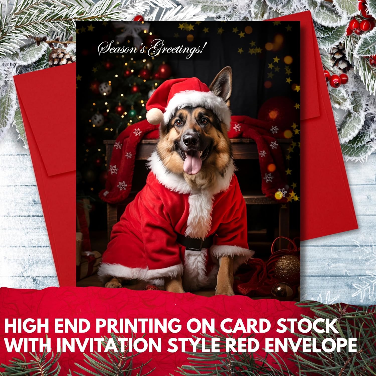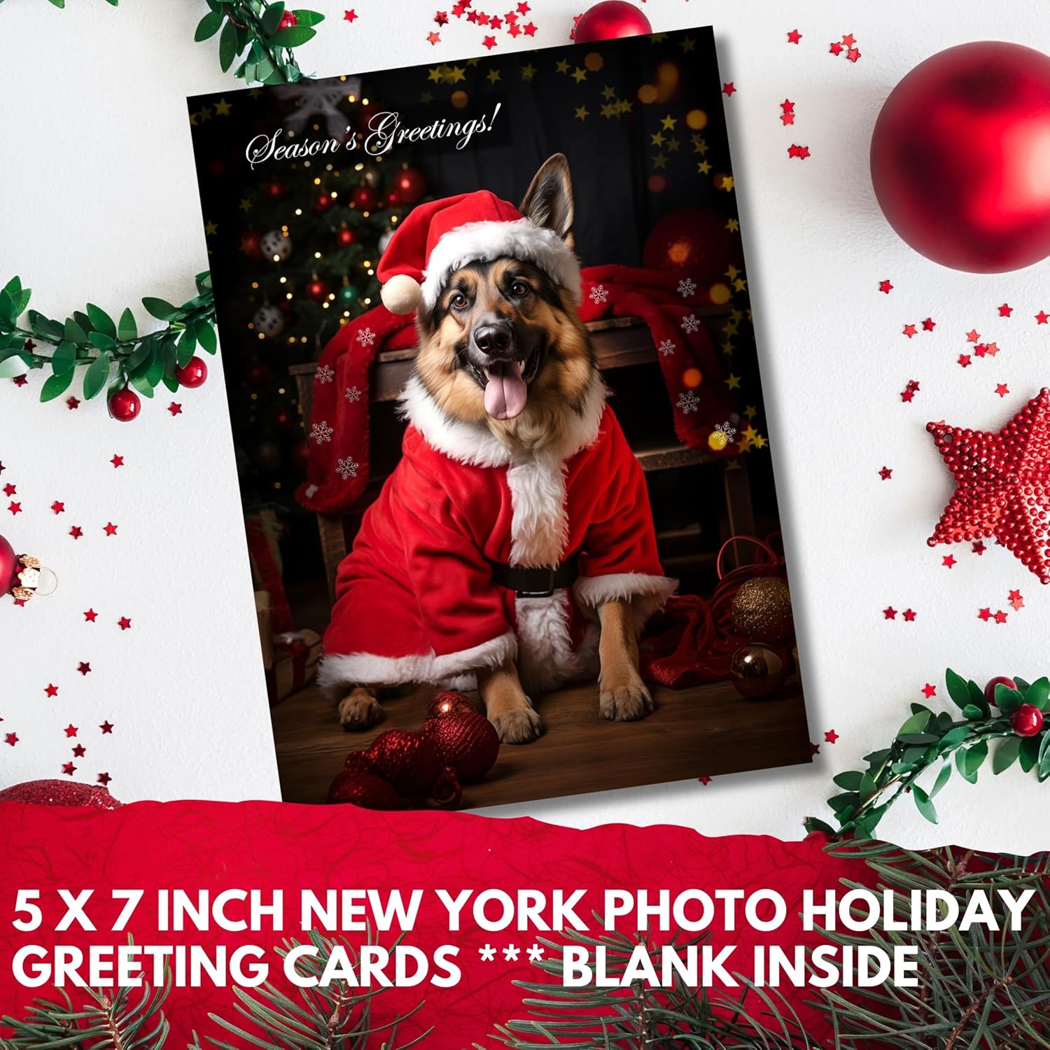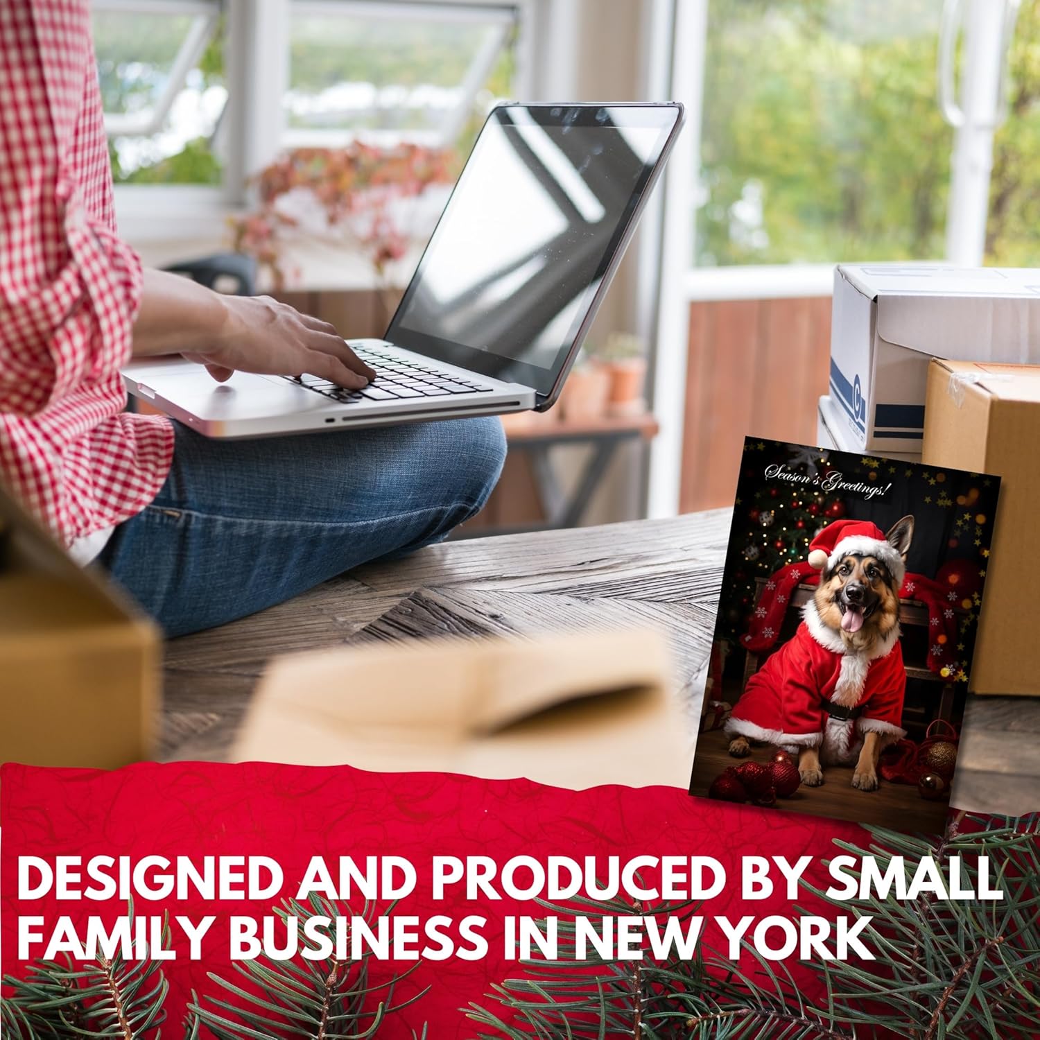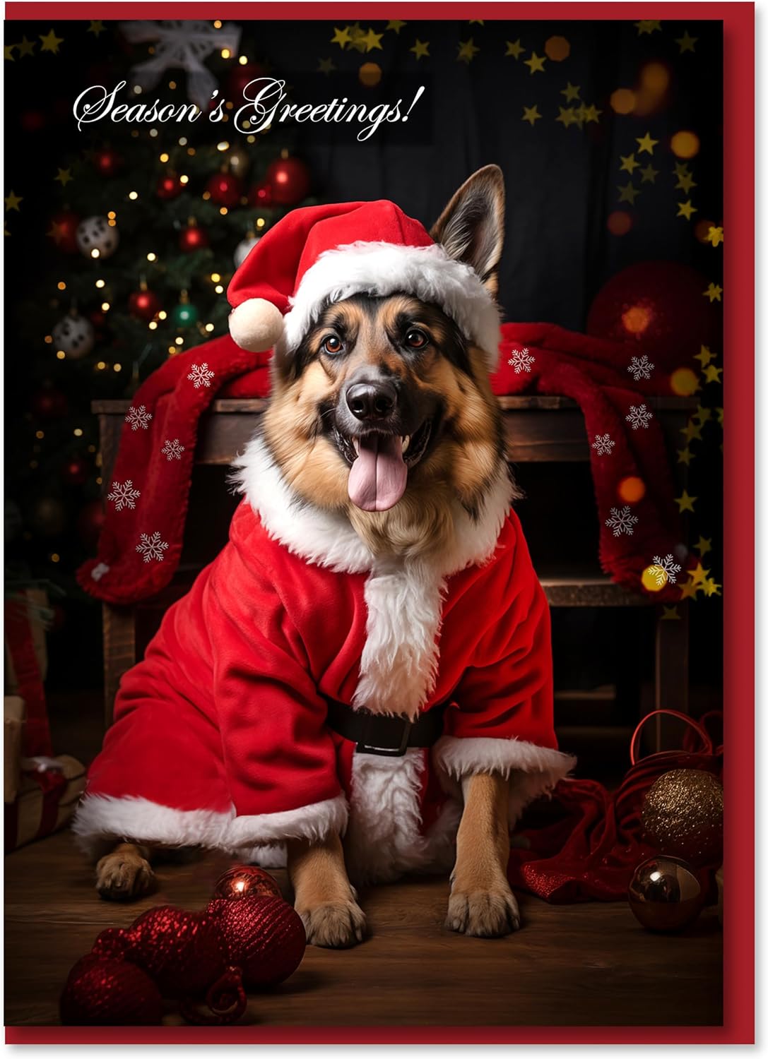 Get in the holiday spirit with this quirky German Shepherd Christmas card! Featuring a festive and adorable pup dressed as Santa's helper, it's the perfect way to spread some cheer. The blank interior allows for a personal touch with your own message, while the high-quality cardstock and digital printing make for a vibrant and durable card. And to top it off, this pet-friendly card is proudly made in the USA by a small business. Happy holidays!